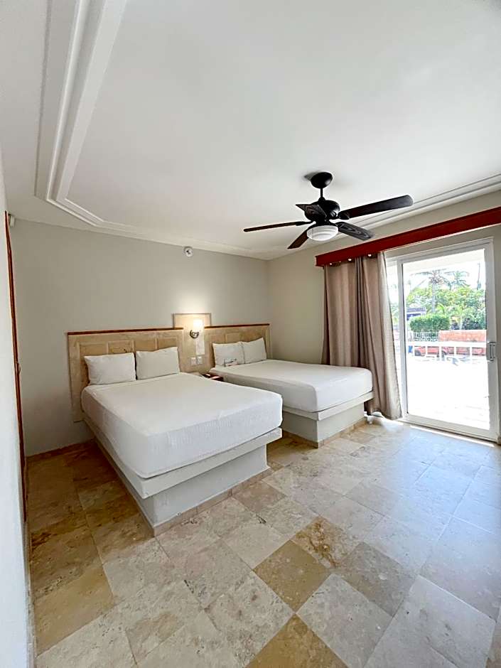 This air-conditioned family room is consisted of of a TV with cable channels, a private bathroom as well as a balcony with pool views. The unit has 2 beds.